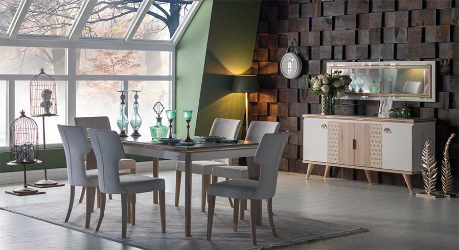 Mobilya sektörünün öncü firmaları arasında yer alan Mydafne, benzersiz ve farklı tasarımlara sahip birçok farklı modele sahip yemek odası takımları ile her evin ihtiyaçlarına uygun üretimler yapmaktadır. Ankara mobilya firmaları arasında siteler bölgesinde hizmet sunan firma dayanıklı ve uzun yıllar kullanabileceğiniz birbirinden farklı yeni trend yemek odası takımları konusunda hizmet vermektedir. Yemek odasına özel renk seçeneklerine sahip yemek masası ve sandalyeleri, kullanıcıların daha rahat bir şekilde faydalanması için özel malzemeden üretilmektedir. Tarzınıza ve mobilyalarınıza uyum içerisinde bir yemek odası takımı arıyorsanız doğru yerdesiniz.